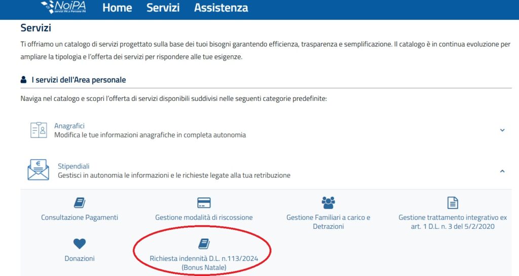 Per fare domanda del Bonus Natale, che ammonta a 100 euro, occorre entrare nel portale NoiPA, dove è stata attivata una specifica funzione: "Richiesta indennità D.L. N. 113/2024 (Bonus Natale)".